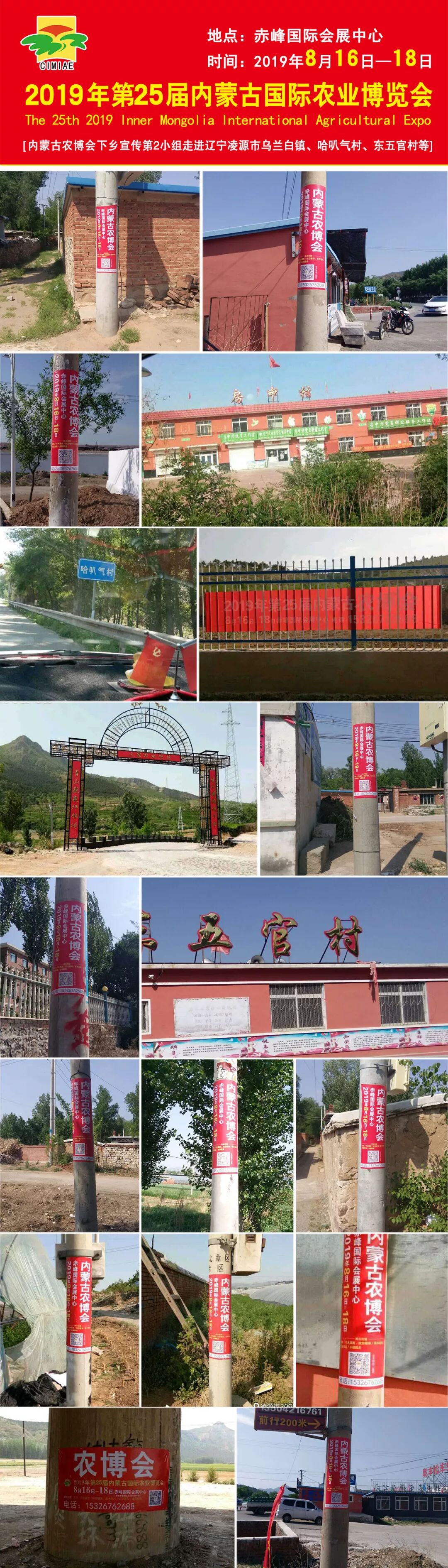 2019第25届内蒙古农博会下乡宣传推广一直积极努力进行中,组委会以村为单位,安排10辆宣传车,投入巨资,重点走访赤峰、通辽、兴安盟、呼伦贝尔、东三省、河北、北京、天津等地的农资经销商、节水灌溉经销商集散地、农业合作社及种植大户、设施农业基地及苗木花卉等相关行业部门,以大量的条幅、即时贴、海报、门票、展报等形式对展会进行推广!我们专业专注,全心全意负责于每一位支持内蒙古农博会的新老客户。8月16日,让我们相聚赤峰国际会展中心,2019内蒙古农博会邀您共享农业市场无限商机!