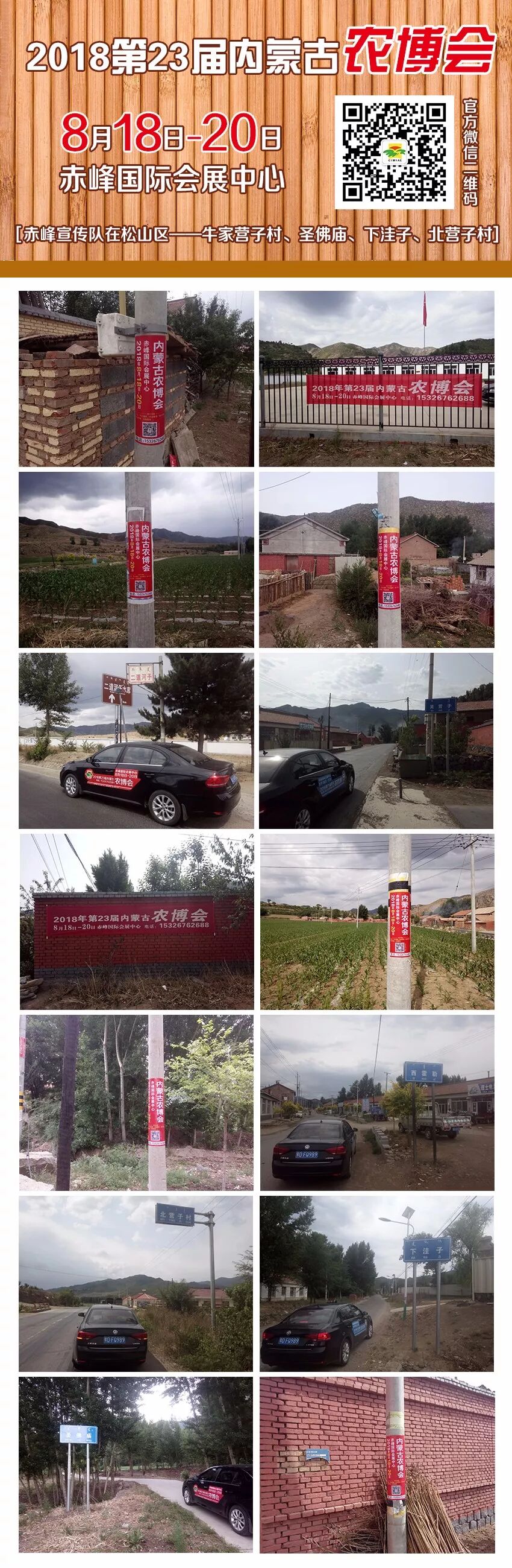 2018第23届内蒙古农博会下乡宣传推广一直积极努力进行中,组委会以村为单位,安排10辆宣传车,投入巨资,重点走访赤峰、通辽、兴安盟、呼伦贝尔、东三省、河北、北京、天津等地的农资经销商、节水灌溉经销商集散地、农业合作社及种植大户、设施农业基地等相关行业部门,以大量的条幅、即时贴、海报、门票、展报等形式对展会进行推广!我们专业专注,全心全意负责于每一位支持内蒙古农博会的新老客户。8月18号让我们相约美丽的赤峰!欢迎关注!