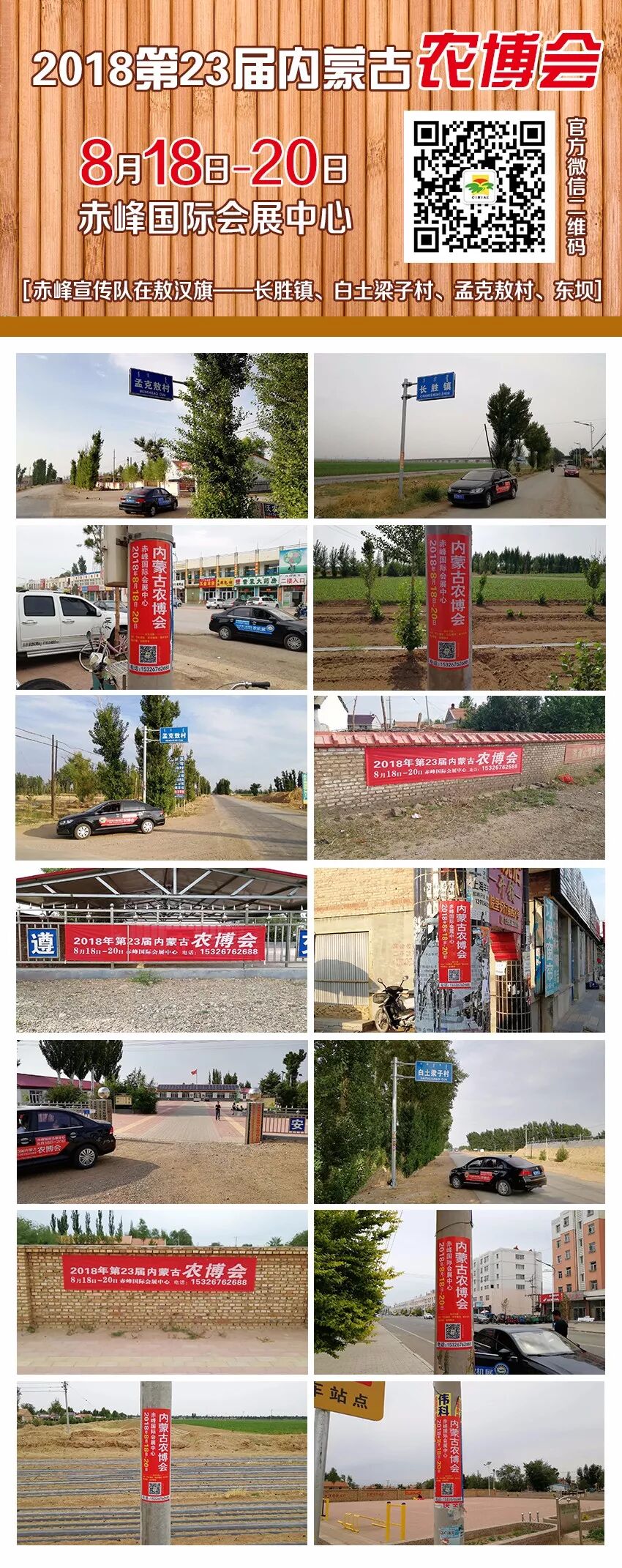 2018第23届内蒙古农博会下乡宣传推广一直积极努力进行中,组委会以村为单位,安排10辆宣传车,投入巨资,重点走访赤峰、通辽、兴安盟、呼伦贝尔、东三省、河北、北京、天津等地的农资经销商、节水灌溉经销商集散地、农业合作社及种植大户、设施农业基地等相关行业部门,以大量的条幅、即时贴、海报、门票、展报等形式对展会进行推广!我们专业专注,全心全意负责于每一位支持内蒙古农博会的新老客户。8月18号让我们相约美丽的赤峰!欢迎关注!